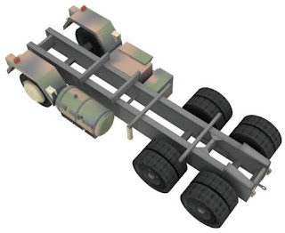 The all new M915A4 glider includes an air conditioned cab mounted on a frame with front axle, wheels and tires, muffler, radiator, fifth wheel, Allison automatic transmission, and front-rear axle hubs (with ABS components installed). It needed only the retained components to be installed to make the M915A4 truck tractor.