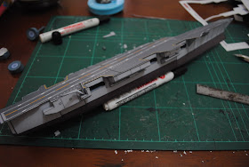 I still remember when I build my first aircraft carrier papermodel, it was around 1993-1994 when I'm junior high.The story began when I bought USS Eisehower 1:800 from Academy plastic model (before that I already start papermodeling) then from the kit I learn every part and detail to make the papermodel, there's no computer at that time all was a scracthbuild finished with water base paint.Well the ship was a request from the youngest PERI member (I think) Gilang and Andre, help with their mum, Emmy..well hope it's gonna complete before early of Desember
